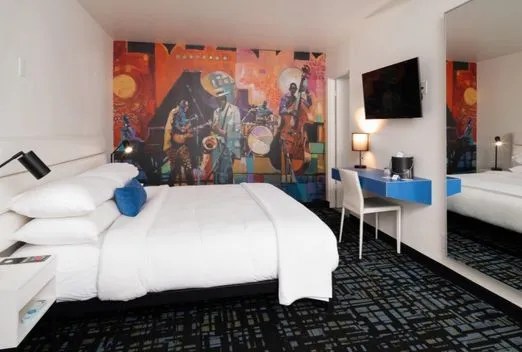 The rooms at The Jupiter are just as cool as the rest of the hotel. They’re decked out with modern decor and all the essentials, plus some quirky touches that make them feel unique. Whether you’re staying in a regular room or one of the more upscale options, you’ll have a comfortable, stylish place to crash after a day of exploring the city. And with that distinctive Portland vibe, it’s like staying in a local artist’s loft—just with a bit more polish.