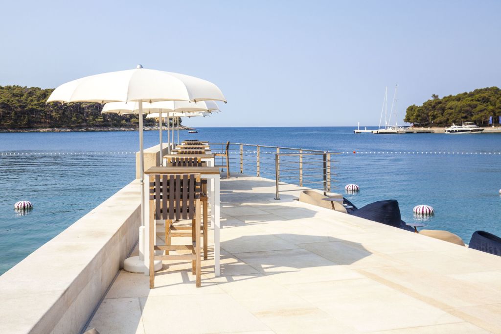 If you’re looking to splurge, the Luxury Suite is where it’s at. With two double rooms, three bathrooms, a living room, and a walk-in closet, it’s more like a private apartment than a hotel room. The expansive terrace, complete with a whirlpool and sun loungers, offers stunning views of the crystal-clear Čikat Bay. Whether you’re sipping a morning coffee or enjoying a sunset soak, the combination of natural shades and minimalist design makes it the ultimate retreat. And yes, if you’re looking to enjoy a smoke, you can light up on the balcony—but remember to be discreet and keep it chill.