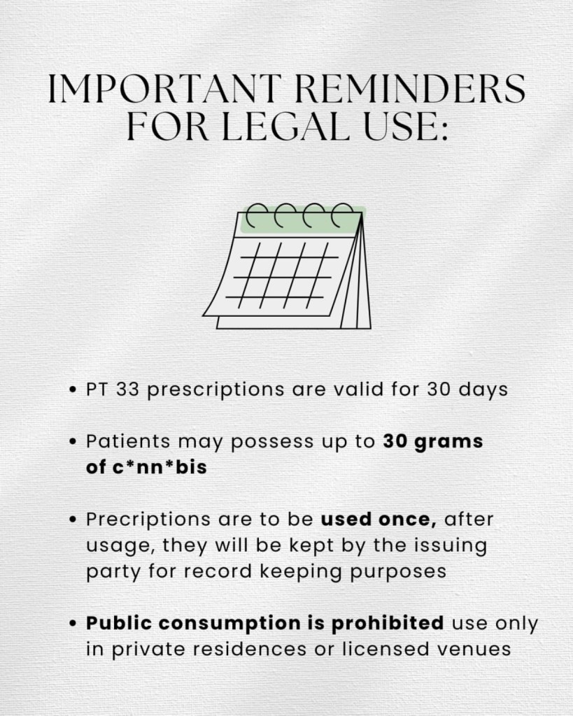 Get Your Prescription Sorted: You still need that PT 33 medical cannabis prescription. No script, no green—simple as that. Stay Discreet: Even at cannabis-friendly hotels, be respectful. Use it in your room or designated area, don’t blow smoke in the hallway, and keep it chill. Follow the Hotel’s Rules: Some places let you vape or use edibles, but not smoke. Others might have specific smoking zones. Just ask! Never Use in Public: This means anywhere outside private hotel spaces or venues that clearly allow it.